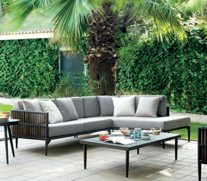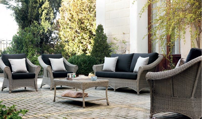 Las tapicerías que puedes elegir para acompañar a estos muebles de exterior también están realizadas en tejidos muy resistentes, para soportar las condiciones de sol y humedad a las que estarán sometidas en terrazas y porches a la intemperie.
